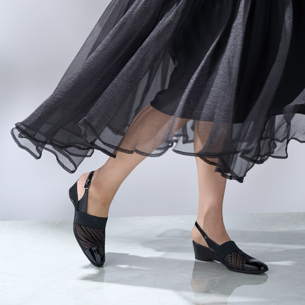 P.217【モデル着用】靴〈品番:HF 23150〉税込36,300円 掲載色=シルバー 【公式】オンラインショップでアイテム詳細をご覧いただけます