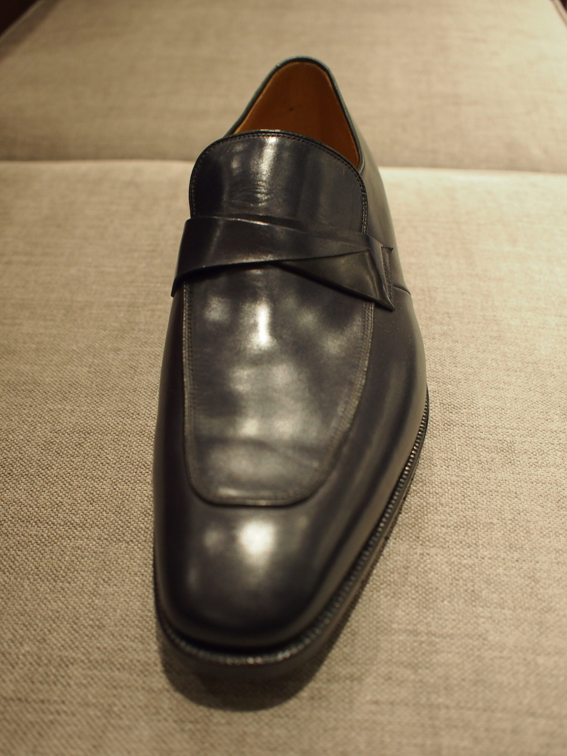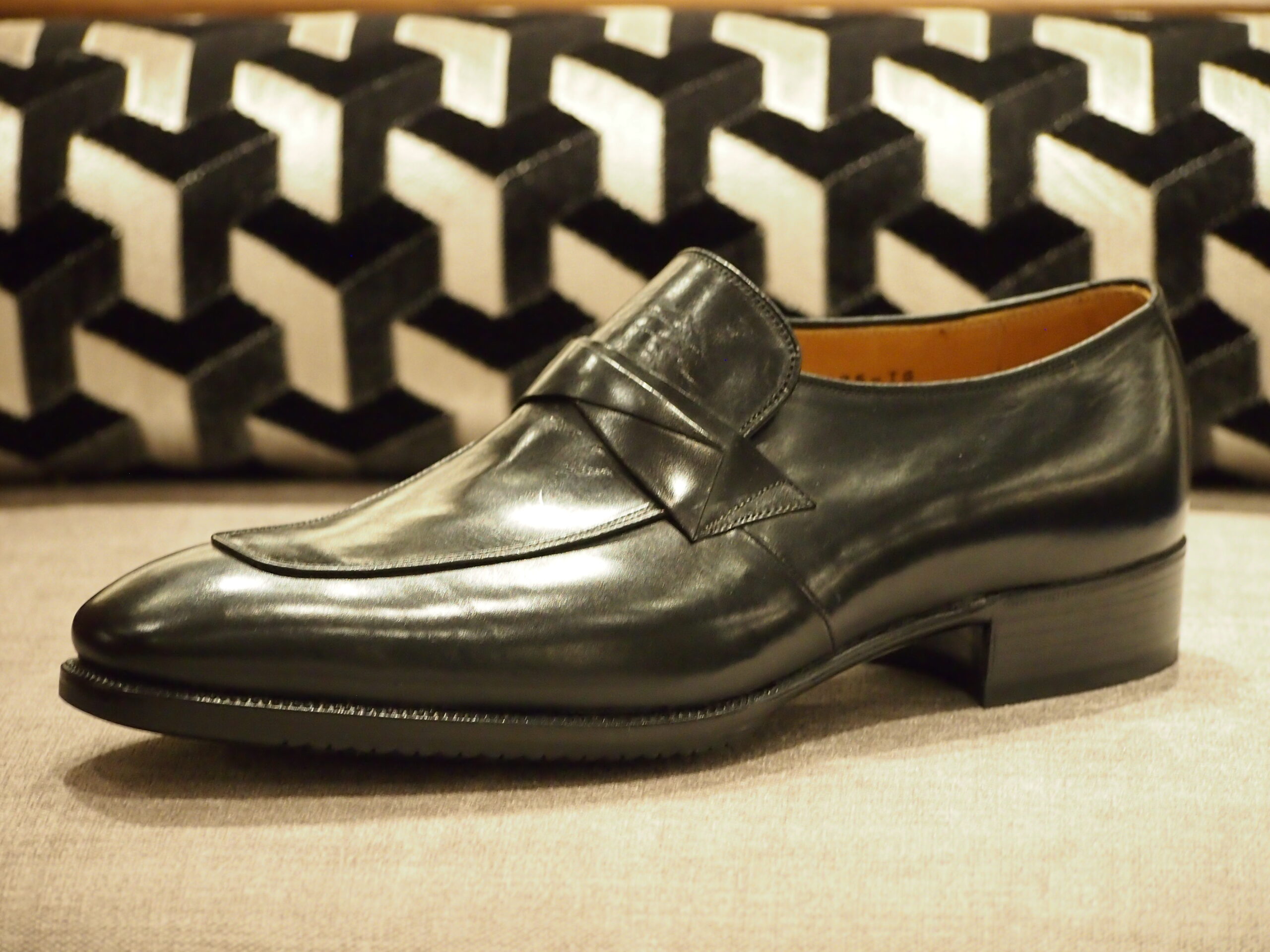 イタリアンベビーカーフを使った手工靴のスリッポンO738です。