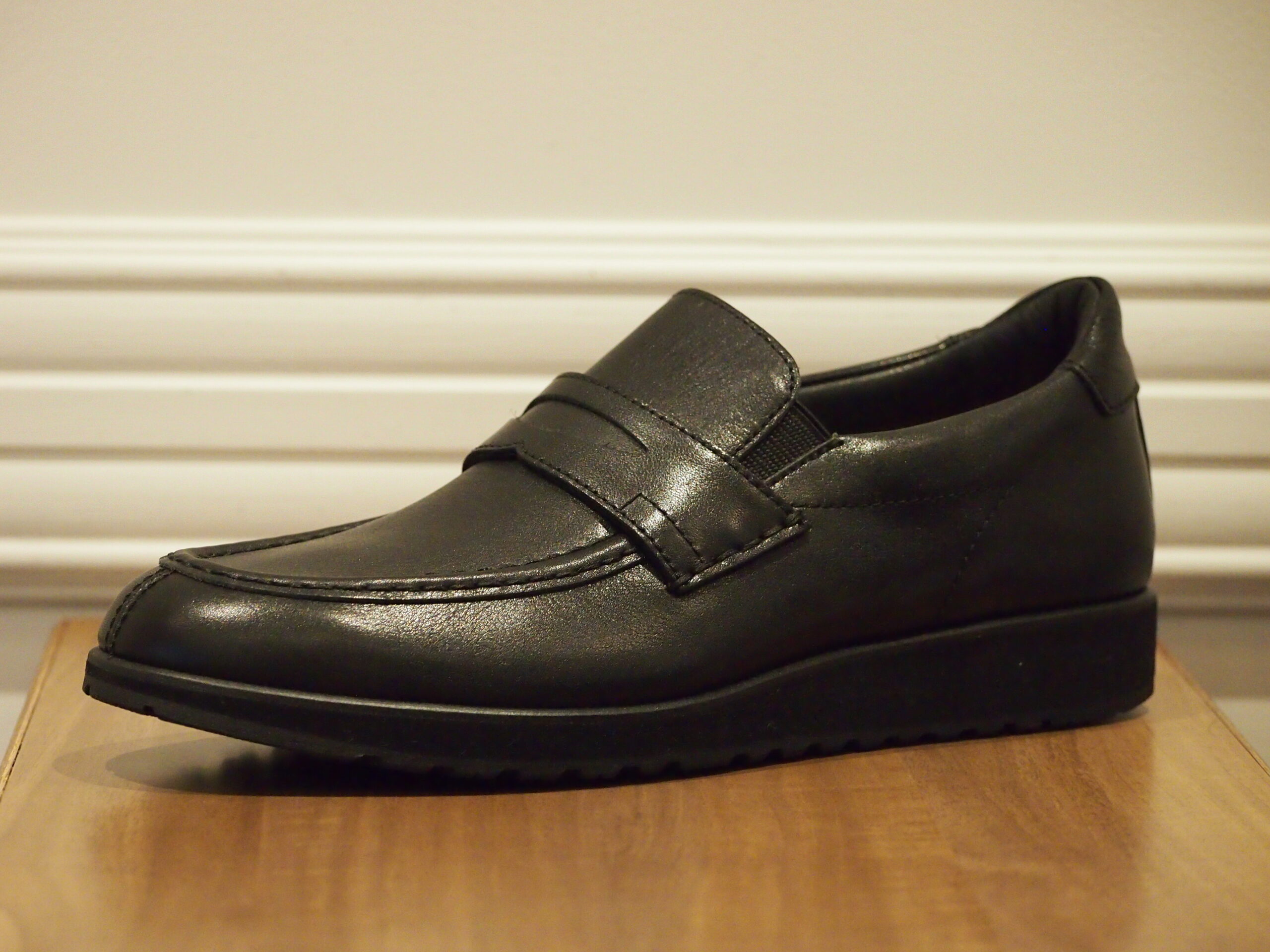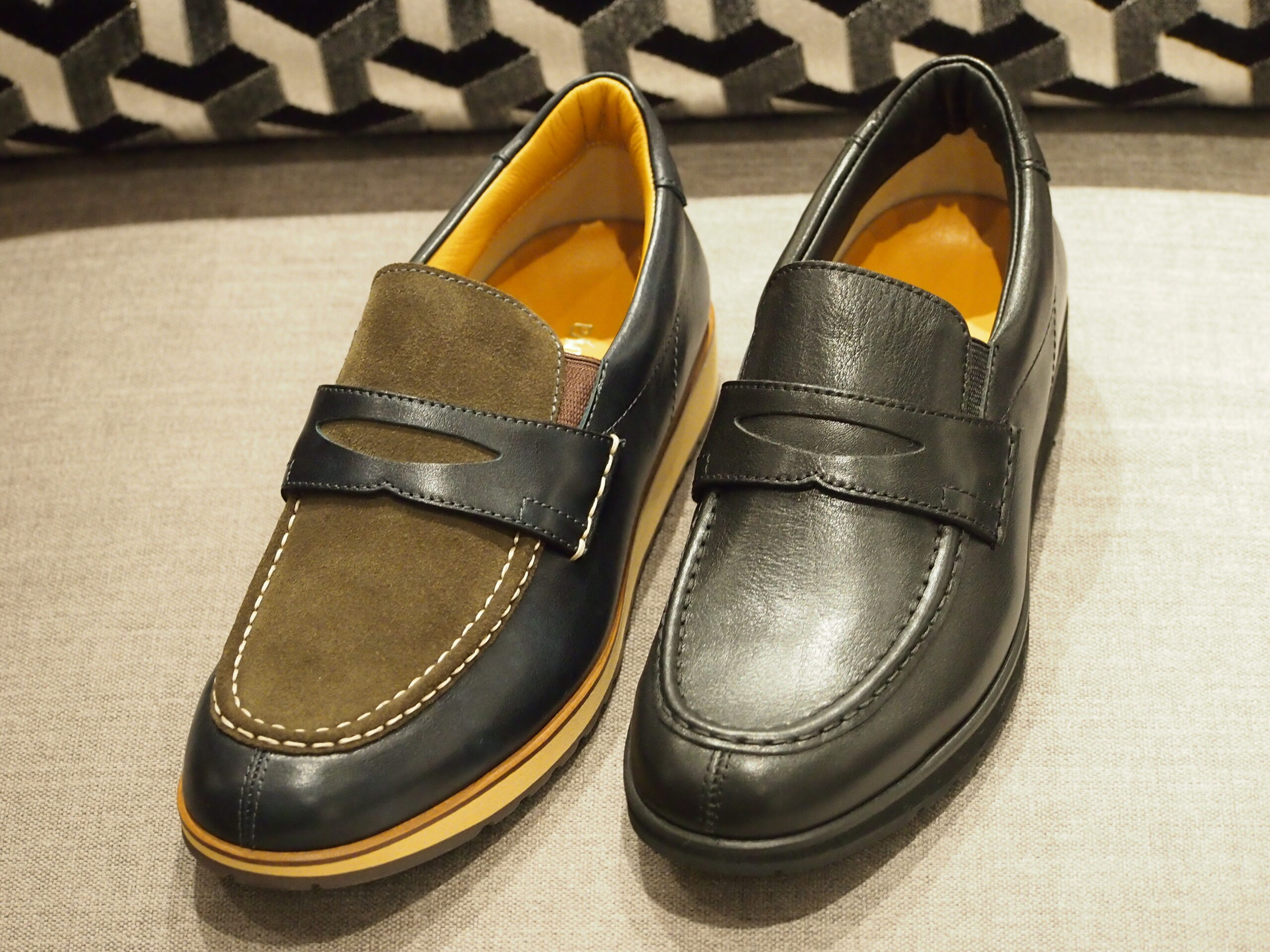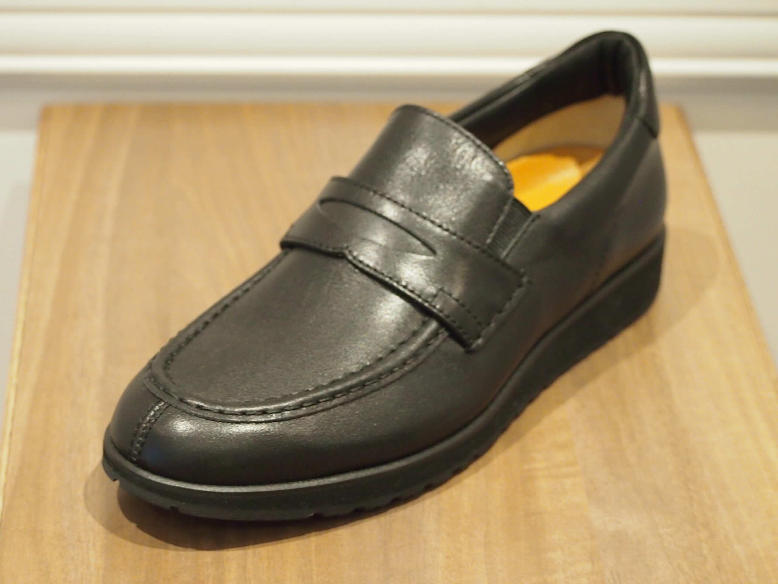 HF2056は、スニーカーの履き心地だけど、見た目はローファーを目指して開発されました。紐なしなので脱ぎ履きが楽で重宝します。