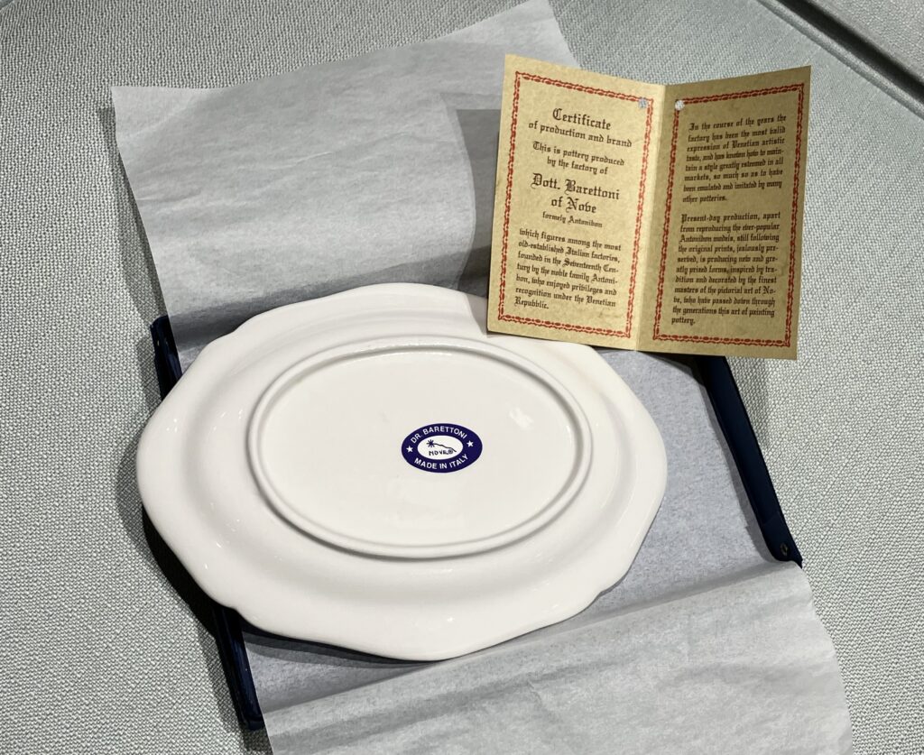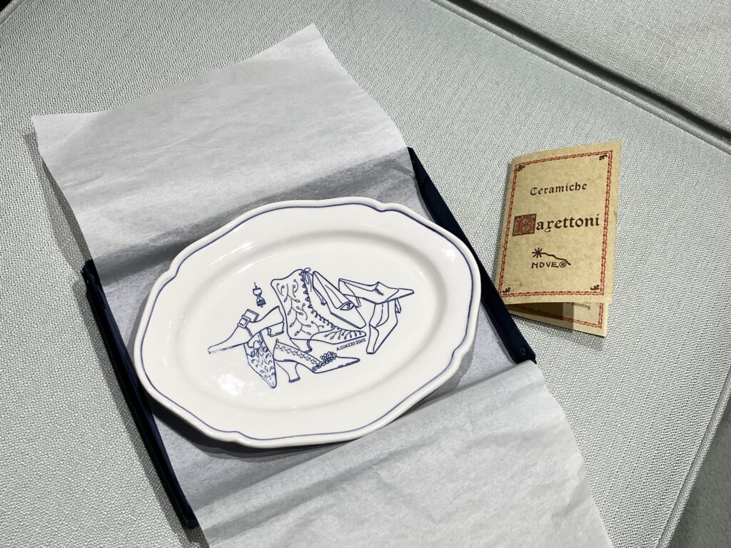 イタリアで最も古い陶磁器メーカーのBARETTONEに、当時イタリア駐在だった商品本部長が、ヴァッサノのファクトリー「グアッツオ」に絵を描いてもらいました。