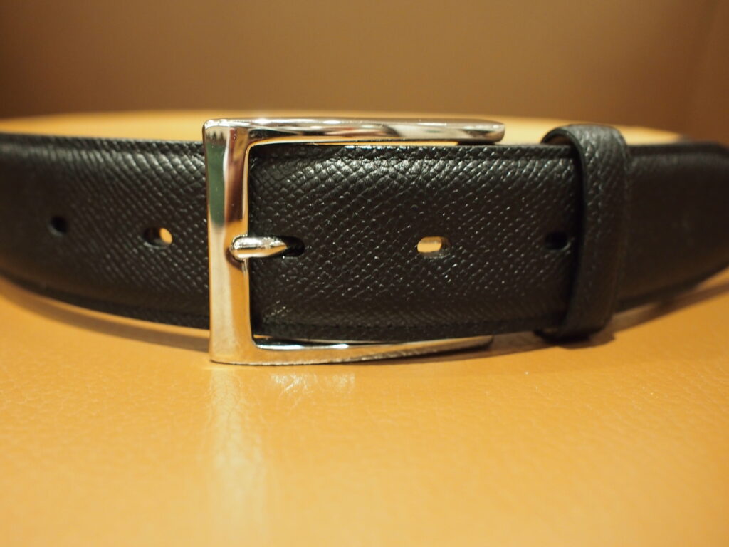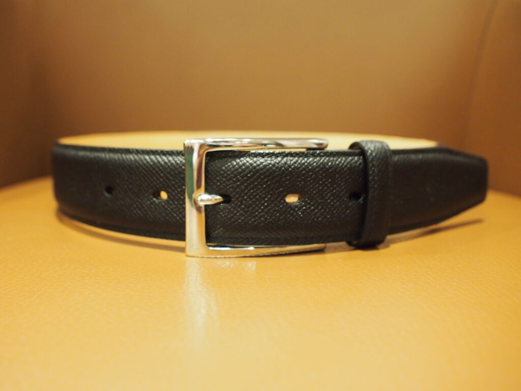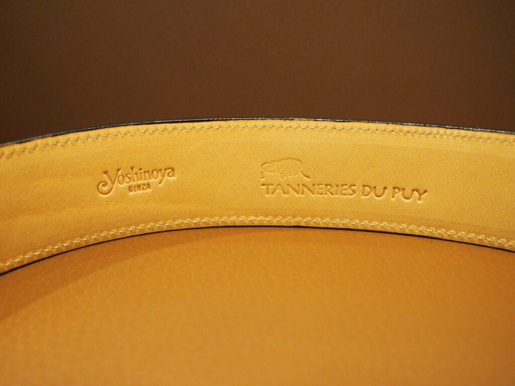 デュプイ(仏)の型押し牛革チェルケスを使ったオーダーベルトです。