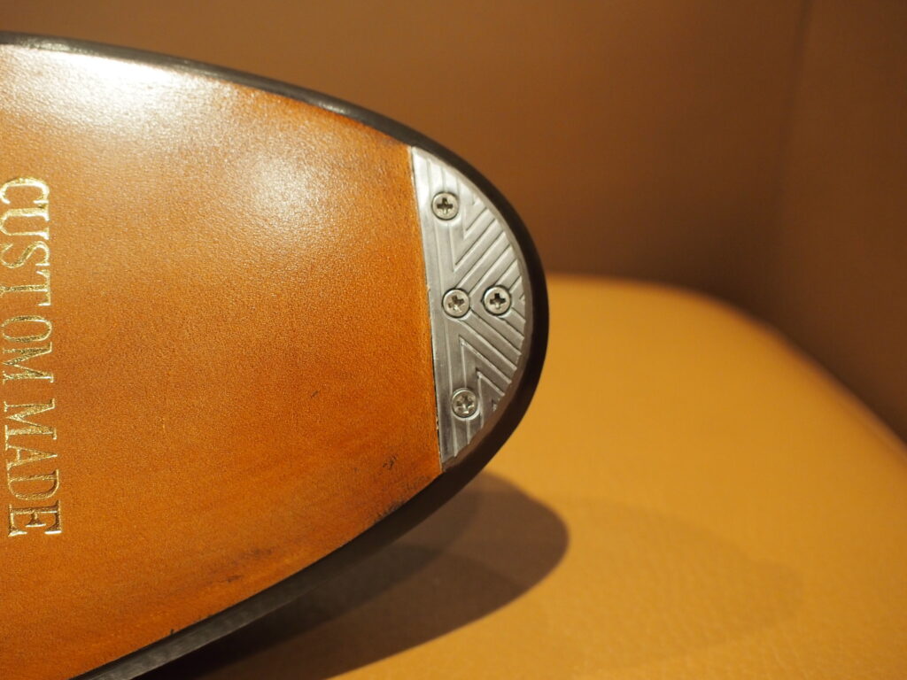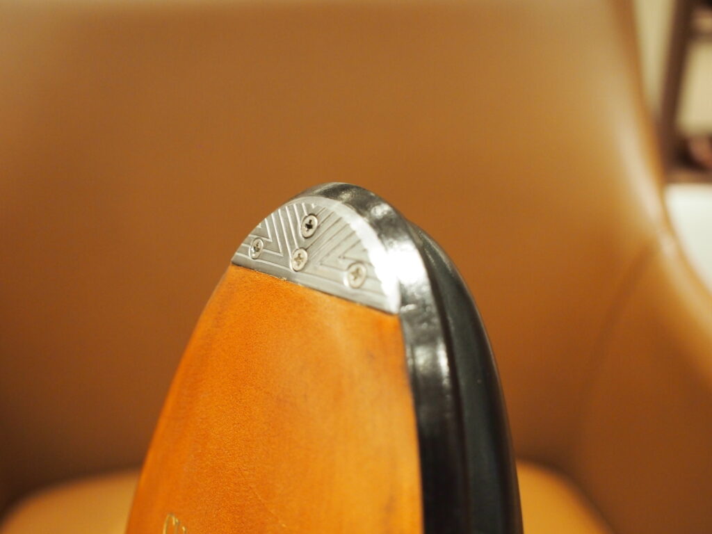 今回、矢筈仕様の靴にビンテージスチールを付ける修理を承りましたが、スチールの角もキレイに削って仕上げています。
