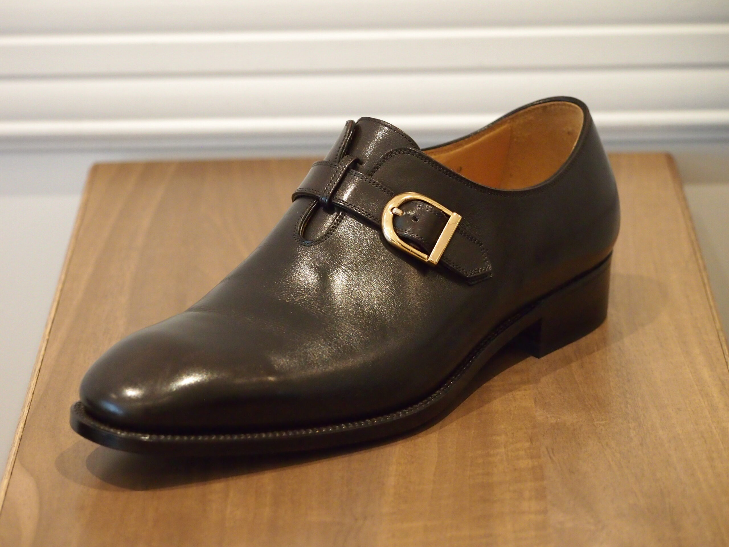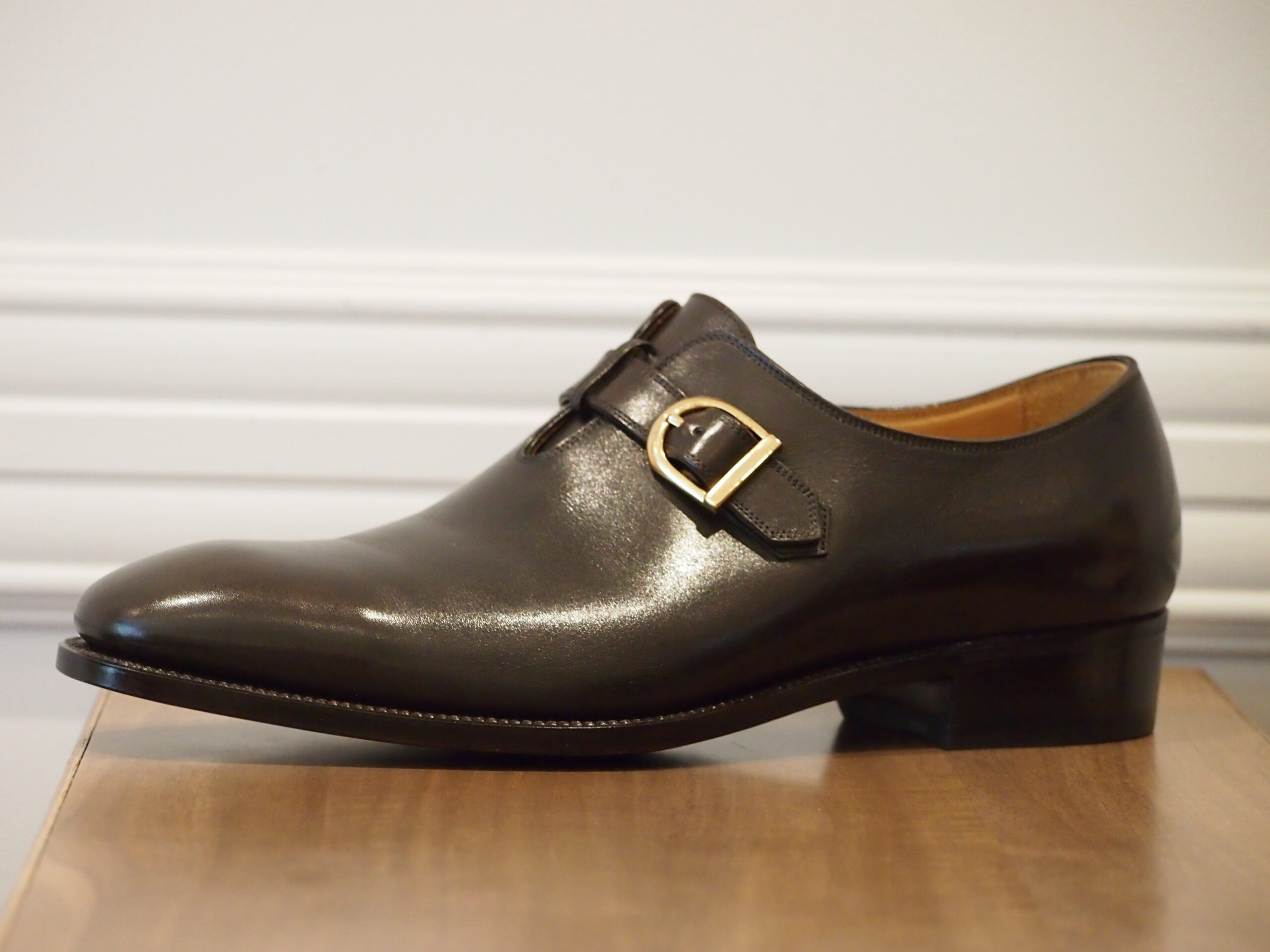 デザインは、ホールカットのシングルモンクストラップです。