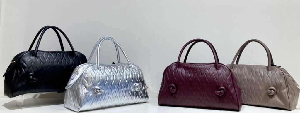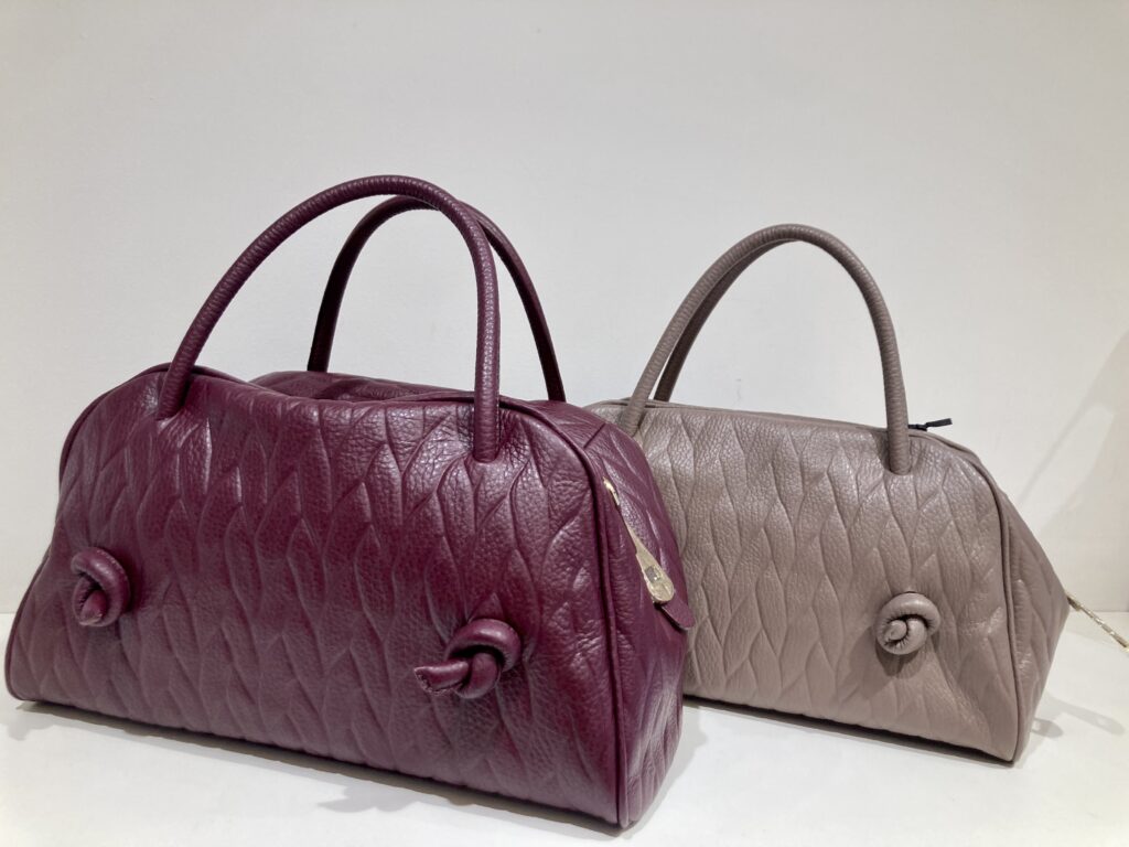 シュリンク加工の革に、ぽこぽこと凹凸をつけたかわいいバッグ。